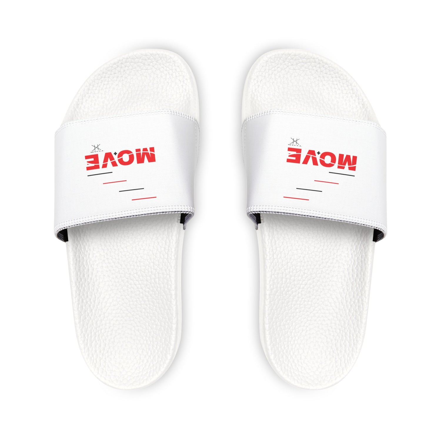 THIS, (Mo+VE: Motion + Verse or poetry in motion), personalized slide sandals is made with PU outsoles and an edge-to-edge strap customization that will never peel, crack, or fade. The sandals feature a high-end quality factor comparable to household-name brands. The straps are made with neoprene and polyester to avoid chafing while the ergonomic sole keeps discomfort at bay.