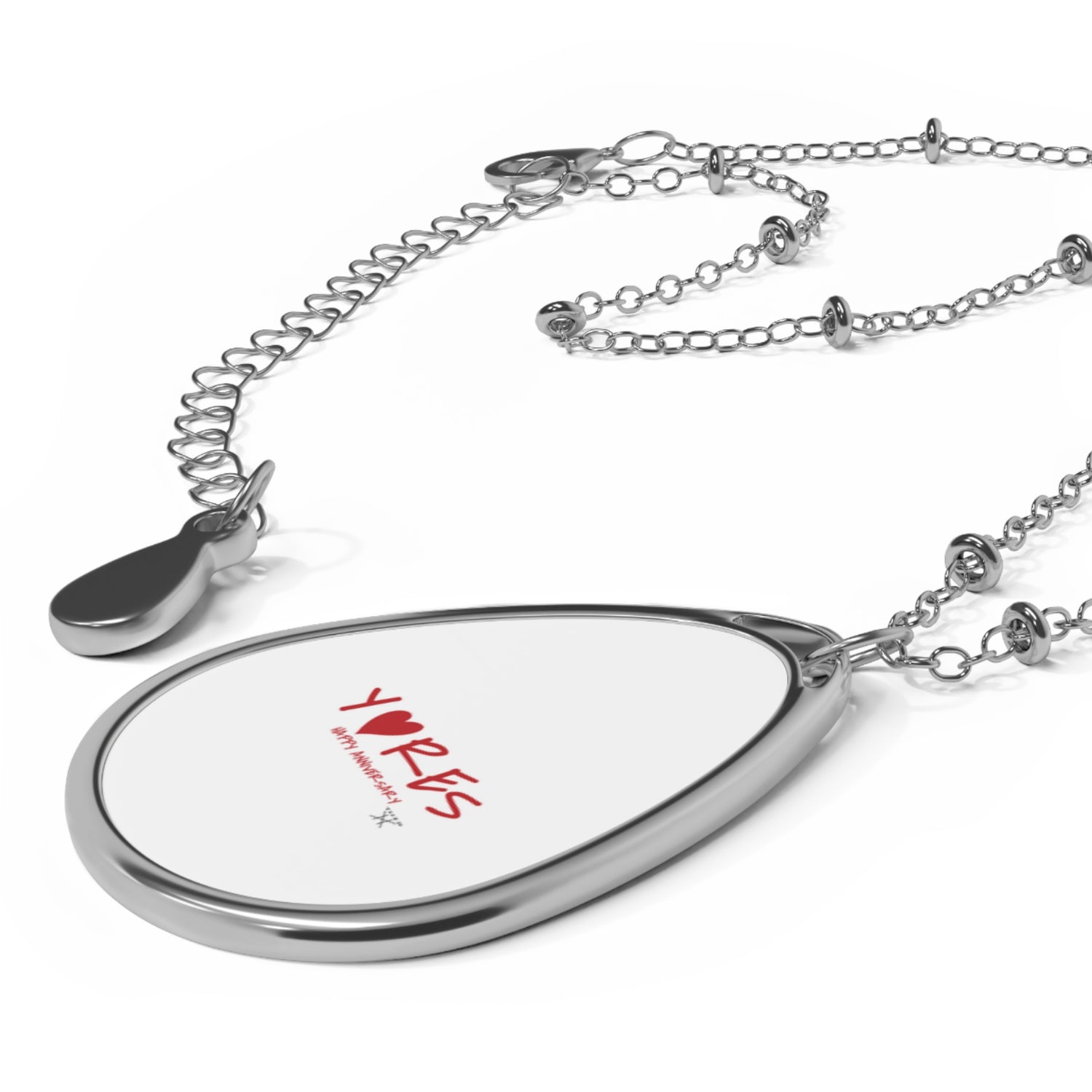 THIS pendant and its chain are made with a robust zinc alloy for dazzling looks that are long-lasting. The print panel is made with aluminum while the pendant itself comes in a unique shape of an ellipse.