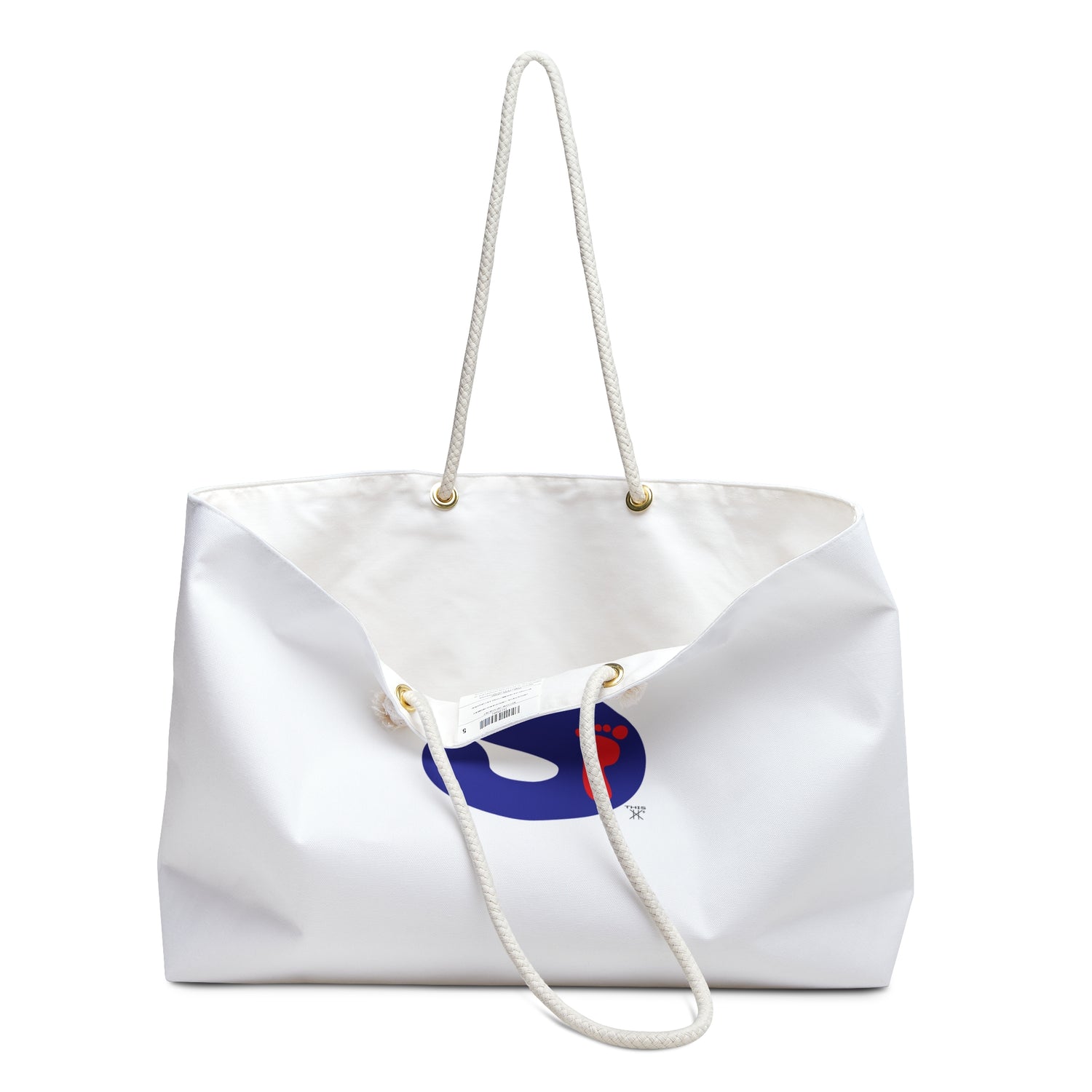THIS Foot in the S oversized Weekender Tote is perfect for your weekend at the beach or in town. The wide-mouthed, durable bag holds a generous amount of personal items and is easily held by its thick rope handles.